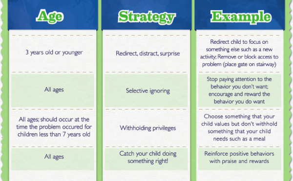 Several strategies for effective discipline are shown in the toolkit below. Ask yourself how you can adapt and combine these strategies for your child. For example, selective ignoring can be combined with redirecting by ignoring a child's whining because she is upset that she can't watch television and then redirecting her attention to finishing a puzzle to distract her.